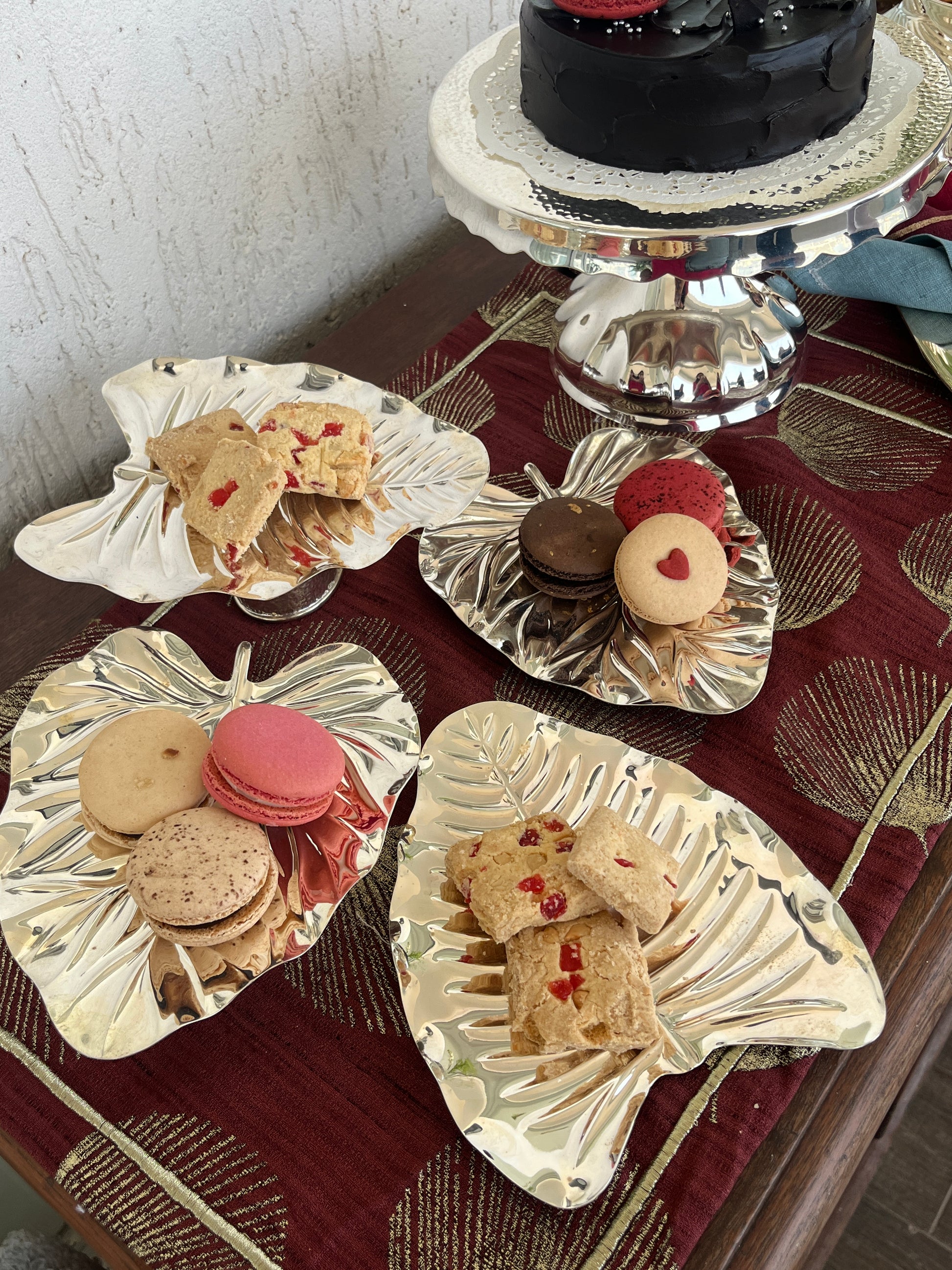 Introducing the Foliage Tapas Set of six trays, each masterfully crafted in the shape of a large leaf, from Irra Luxury's range of silver-plated tableware. These tapas trays are designed to elevate the experience of sharing small plates and appetizers. The trays are meticulously silver-plated, boasting a lustrous finish that radiates opulence and refinement.