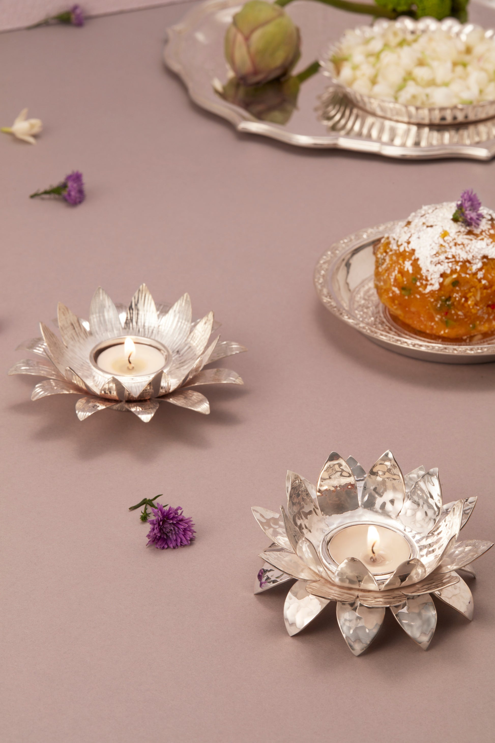 The design of this tea light holder is inspired by the delicate and graceful form of lotus petals. Versatile in its use, the silver-plated tea light holder from Irra Luxury is perfect for creating a calming ambience in your meditation space, adding a touch of elegance to your dining table, or simply as a decorative piece. It makes for a thoughtful and serene gift, ideal for those who appreciate the beauty of nature, the art of fine craftsmanship, and the soothing power of candlelight.