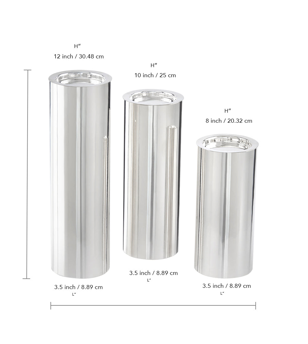 The Terrific Trio / Modern Minimist Set includes three candle stands of varying heights, creating a dynamic and visually interesting display when grouped together. The differing heights allow for a layered look, adding depth and dimension to your decor. The minimalist design is both timeless and contemporary, making these candlestands suitable for a variety of interior styles. Whether placed in a minimalist setting, a modern industrial space, or a more traditional environment, they adapt seamlessly.